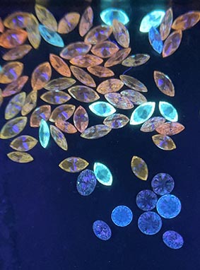 gems. It is characterised by using 220 nm Deep UV (DUV) that produces different luminescent reactions in diamond depending on their origin. Natural diamonds will fluoresce blue and not