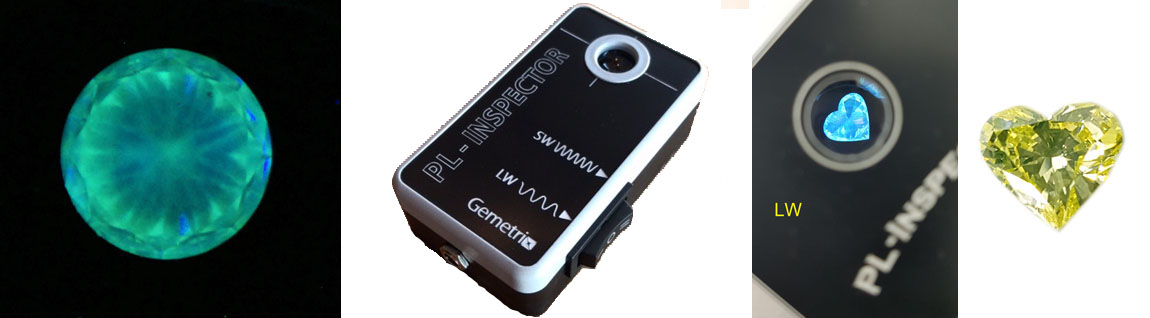 The PL-Inspector (PhotoLuminescence Inspector) allows observation of fluorescence and phosphorescence from short-wave (SW) and long-wave (LW) ultra-violet illumination. These observations can help a gemmologist determine whether a diamond or gem is synthetic or treated. The colour and intensity of the fluorescence provides a useful indicator, with a common test being whether the SW intensity is brighter than the LW, thereby suggestive of a synthetic diamond.