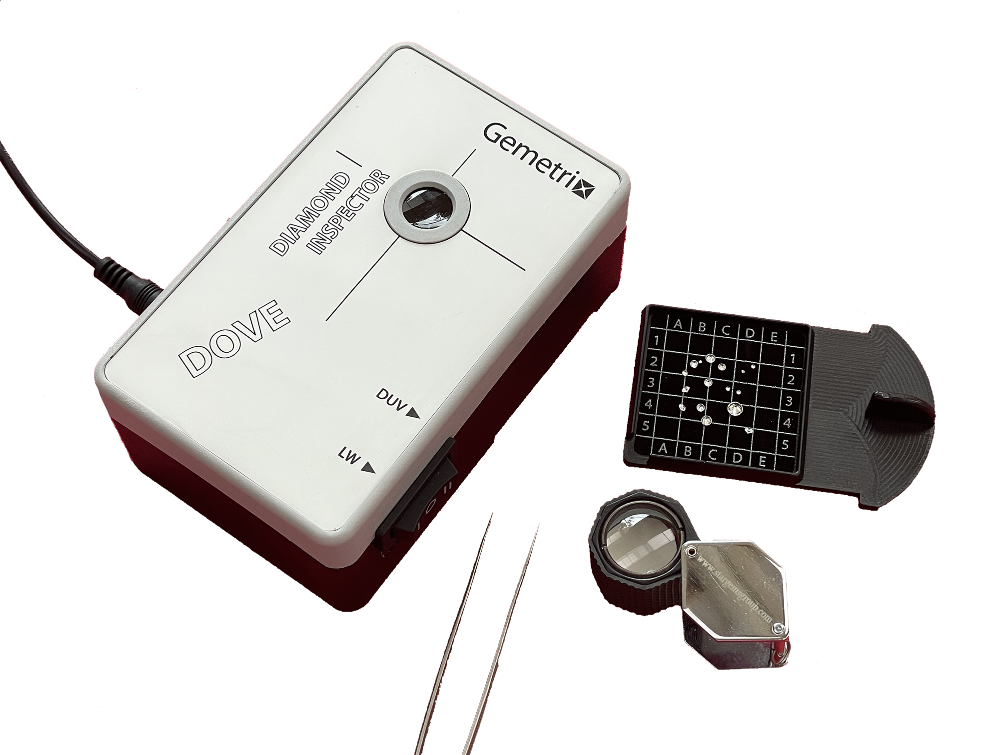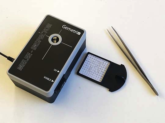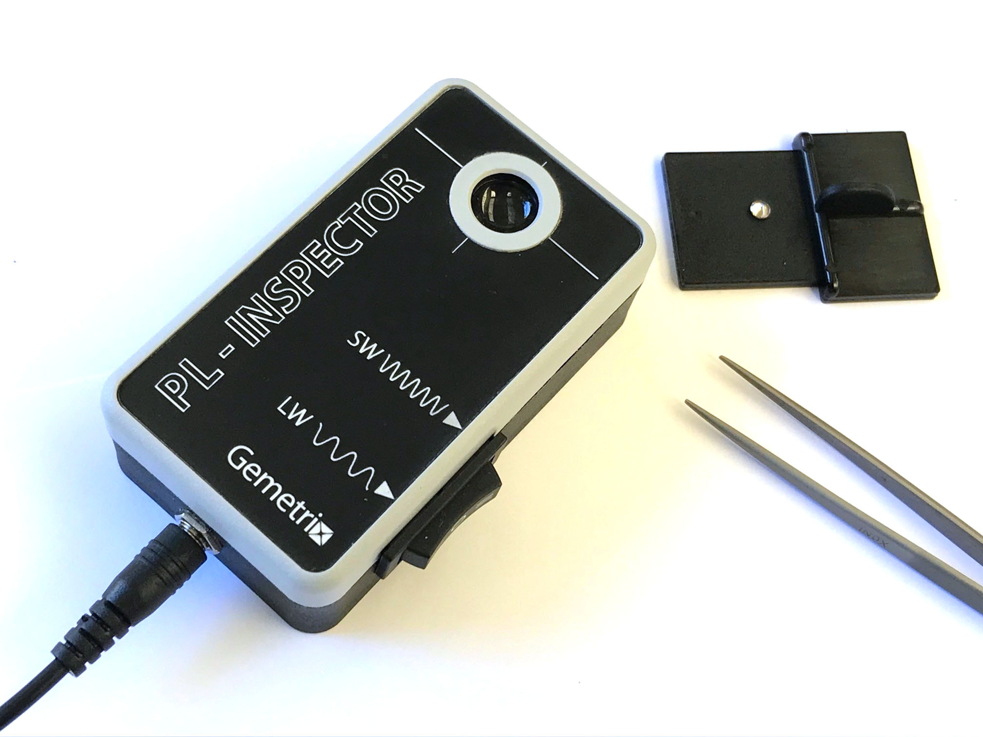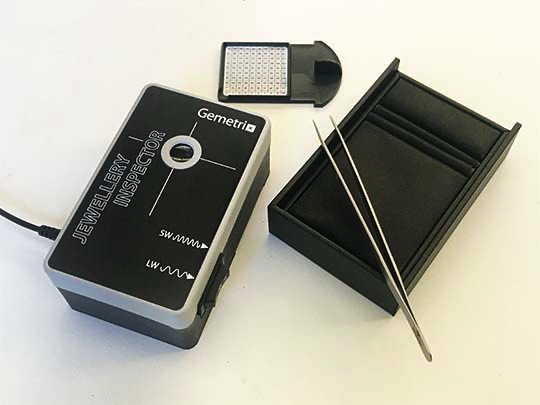 Depending on the application, four Inspector models are available. The PL and Jewellery Inspectors provide LW (365 nm) and SW (255 nm) UV illumination, the Melee Inspector only provides SW UV and white light illumination, while the latest addition - the Dove, provides deep UV (220 nm) and LW. Gemetrix Mobile App allows a smartphone camera to capture and compare images. Visit the Gallery for examples of reactions. All models have a dark enclosed viewing chamber and are powered by a 12V power adaptor with a plug configuration to suit your country. Features of the different Inspector models are described below.